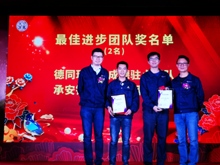 上圖:總經(jīng)理周建新、副總經(jīng)理岑國明為獲得“最佳進(jìn)步團隊獎”團隊頒獎